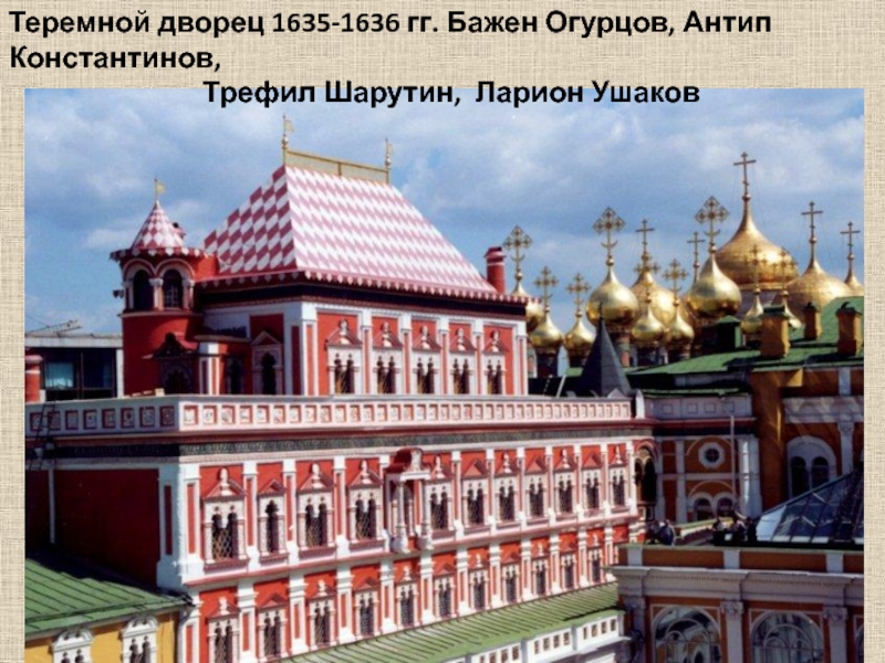 Теремной дворец 1635-1636 гг. Бажен Огурцов, Антип Константинов, Трефил Шарутин, Ларион Ушаков