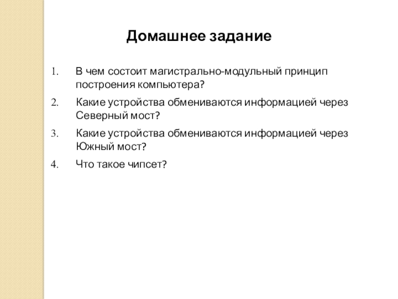 модернизировать свой компьютер.Этот принцип заключается в том, что персональный компьютер состоит из модулей (плат, звуковых- и видеокарт, сетевых карт, дисководов, а также периферийных устройств) и магистрали, которая соединяет эти модули между собой. Основную роль магистрали играет материнская плата.