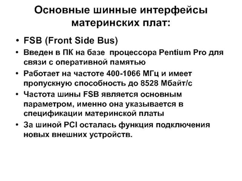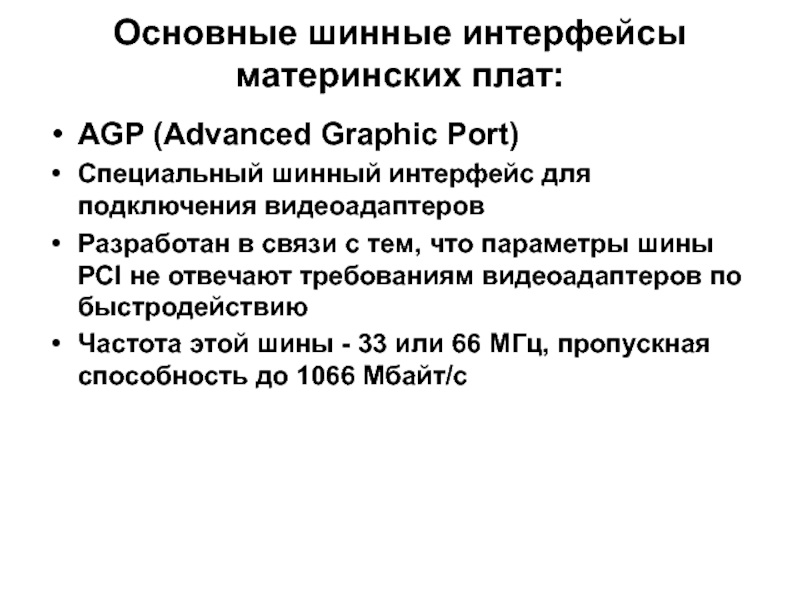 Слайд 94Основные шинные интерфейсы материнских плат: