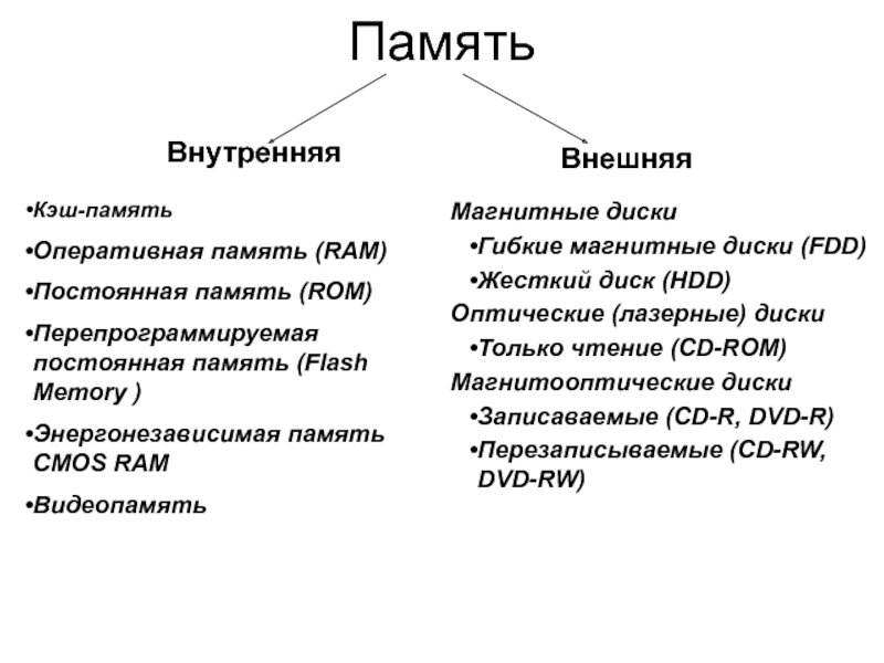 Unit, CPU) различают внутренние и внешние устройства. Внешними, как правило