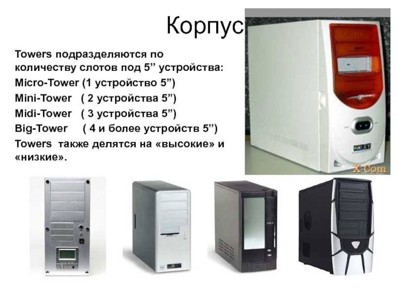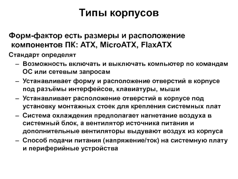 Слайд 13Форм-фактор есть размеры и расположение компонентов ПК: ATX, MicroATX, FlaxATX