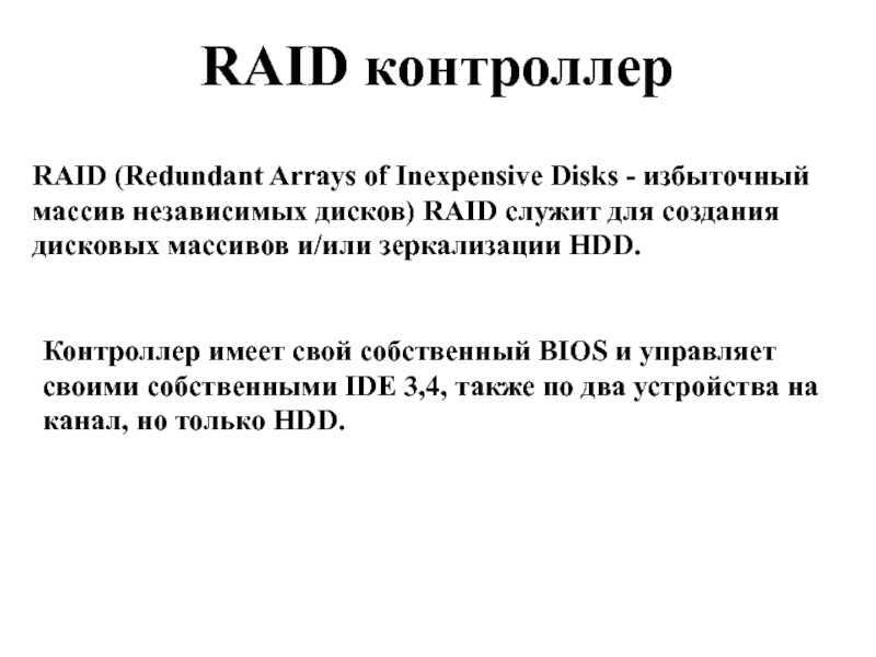 независимых дисков) RAID служит для создания дисковых массивов и/или зеркализации