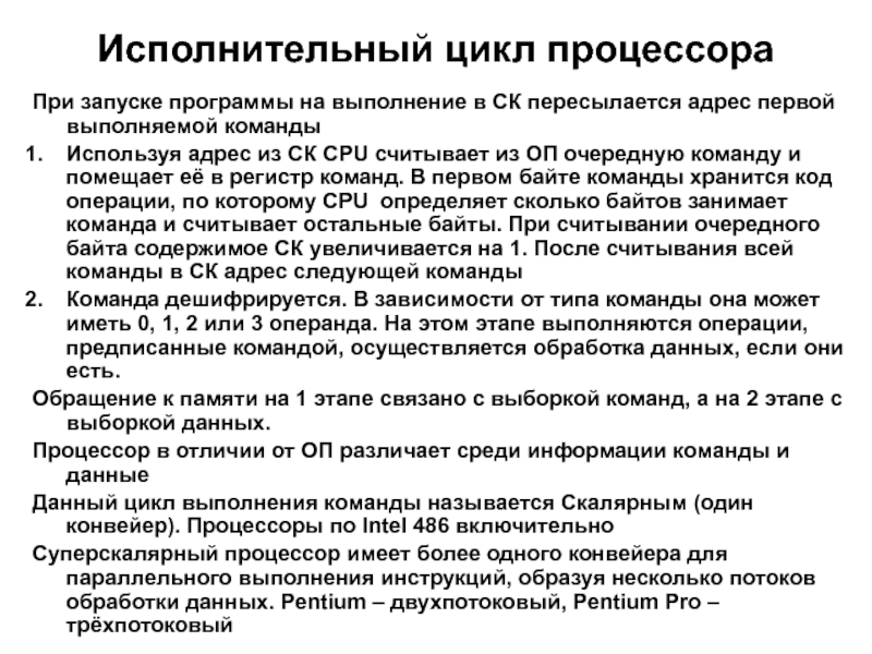 памяти осуществляется с помощью счетчика команд. Этот регистр процессора последовательно увеличивает хранимый в нем адрес очередной команды на длину команды