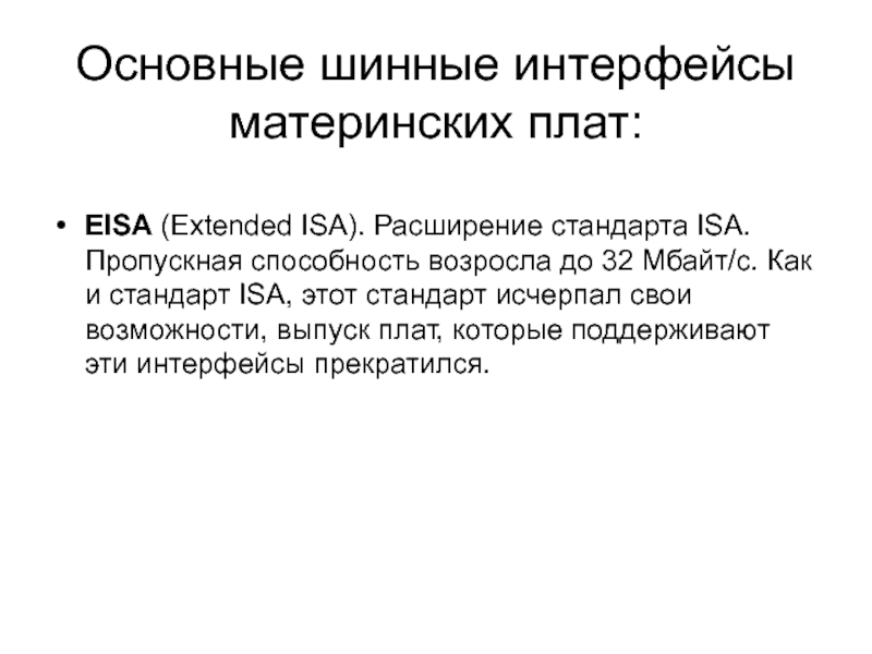 Слайд 96Основные шинные интерфейсы материнских плат: