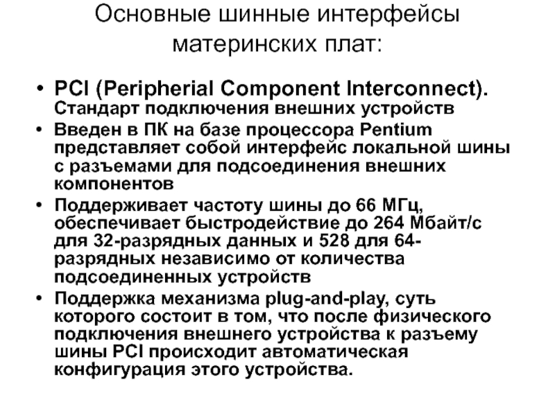 Стандарт подключения внешних устройств, введенный в ПК на базе процессора Pentium поддержка механизма Plug-and-Play