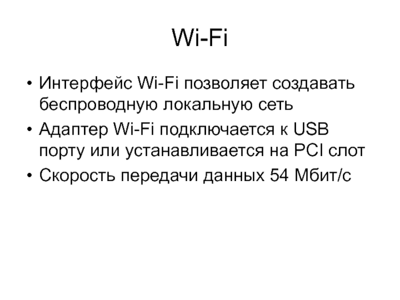 Интерфейс Wi-Fi позволяет создавать беспроводную локальную сеть