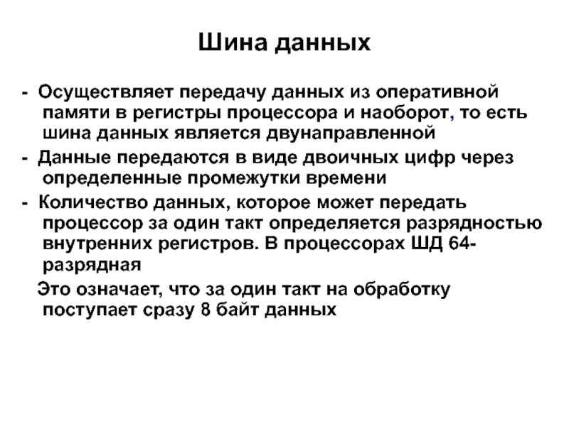Магистраль (системная шина) есть группа проводов и электронных схем, связывающих