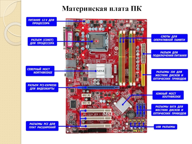 плата – основная плата персонального компьютера, которая используется для размещения его внутренних устройств.