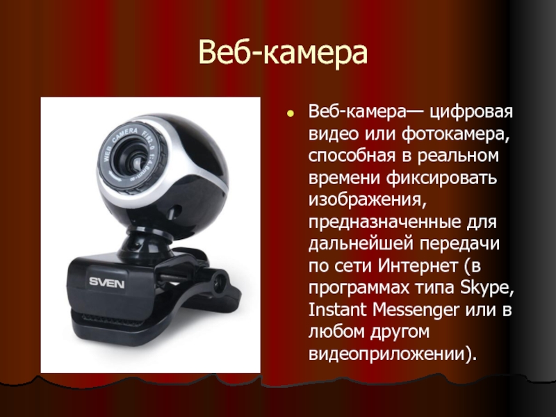 Слайд 17Веб-камера