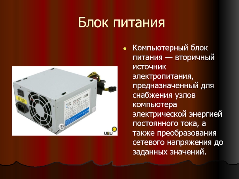 Компьютерный блок питания — вторичный источник электропитания, предназначенный
