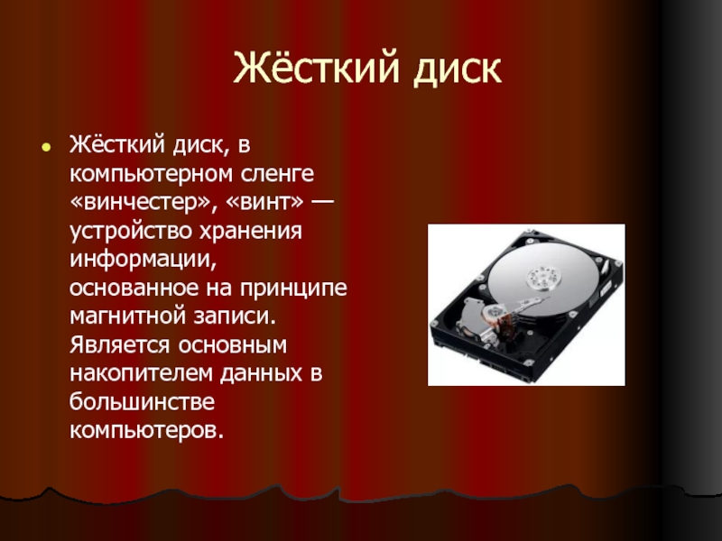 Жёсткий диск, в компьютерном сленге «винчестер», «винт» —
