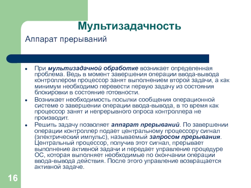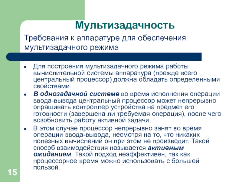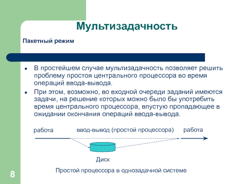 В простейшем случае мультизадачность позволяет решить проблему простоя центрального