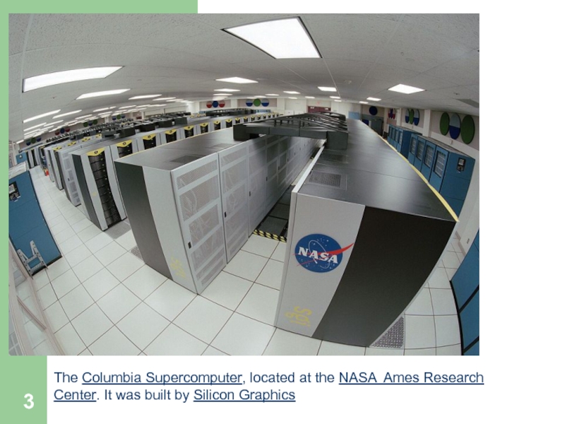Слайд 3The Columbia Supercomputer, located at the NASA Ames Research Center.