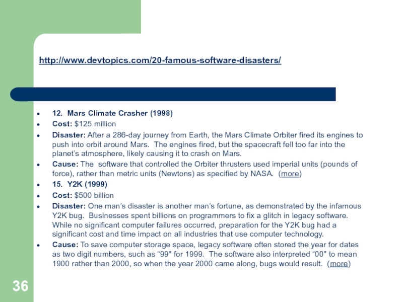 Слайд 36http://www.devtopics.com/20-famous-software-disasters/