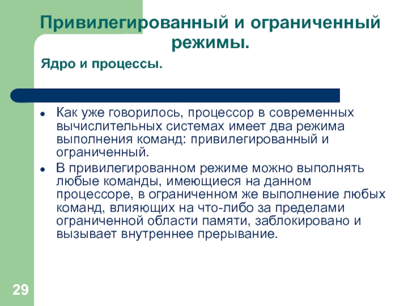 в современных вычислительных системах имеет два режима выполнения команд: привилегированный