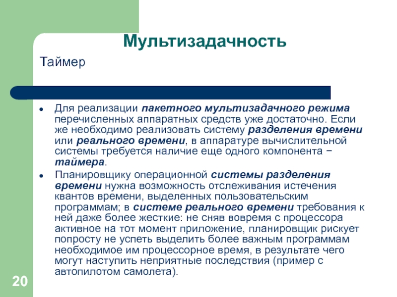 Требования к аппаратуре для обеспечения мультизадачного режима
