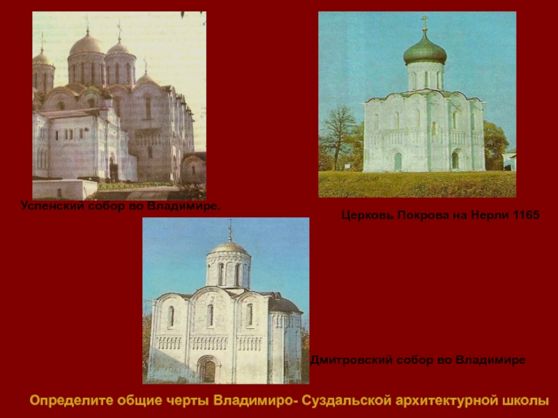 Слайд 15Определите общие черты Владимиро- Суздальской архитектурной школы