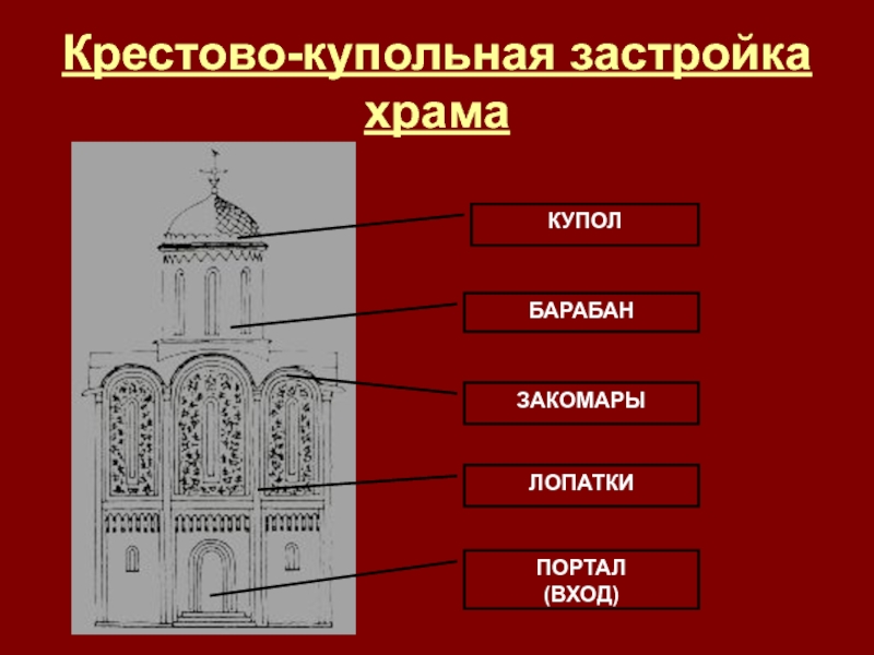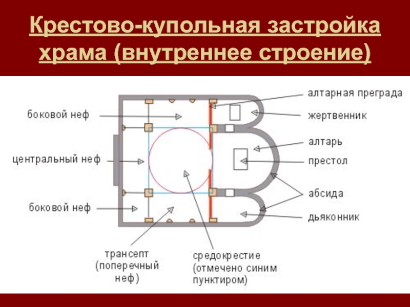 Слайд 7Крестово-купольная застройка храма (внутреннее строение)