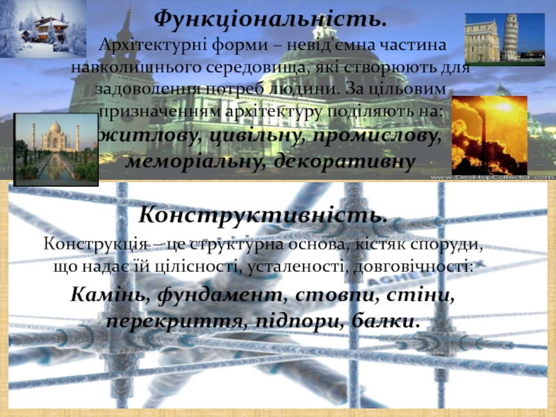 Конструкція – це структурна основа, кістяк споруди, що надає їй цілісності, усталеності, довговічності: