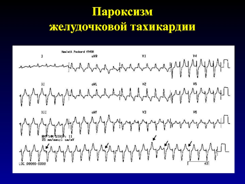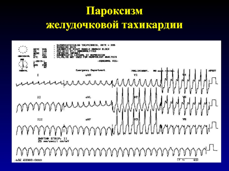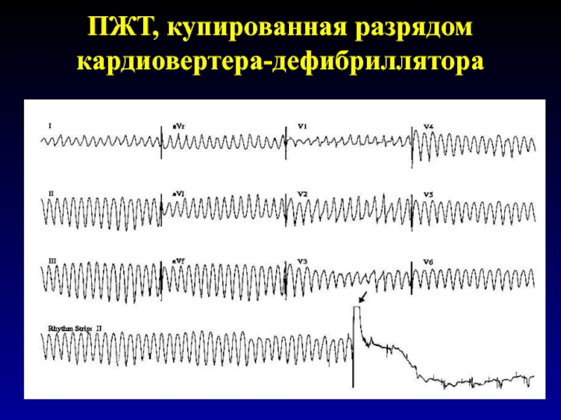 Слайд 25ПЖТ, купированная разрядом кардиовертера-дефибриллятора