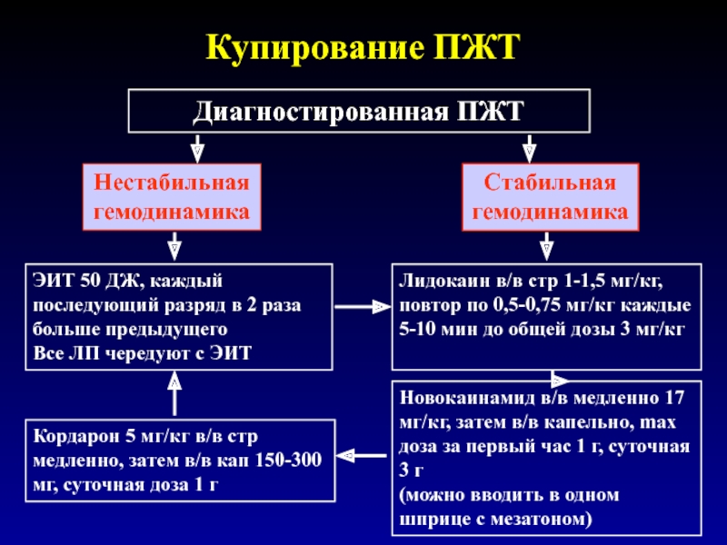 Кордарон 5 мг/кг в/в стр медленно, затем в/в кап 150-300 мг, суточная доза 1 г
