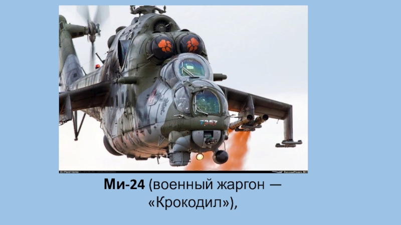 Слайд 12Ми-24 (военный жаргон — «Крокодил»),