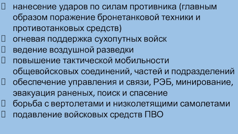 Слайд 5ОСНОВНЫЕ ЗАДАЧИ АРМЕЙСКОЙ АВИАЦИИ