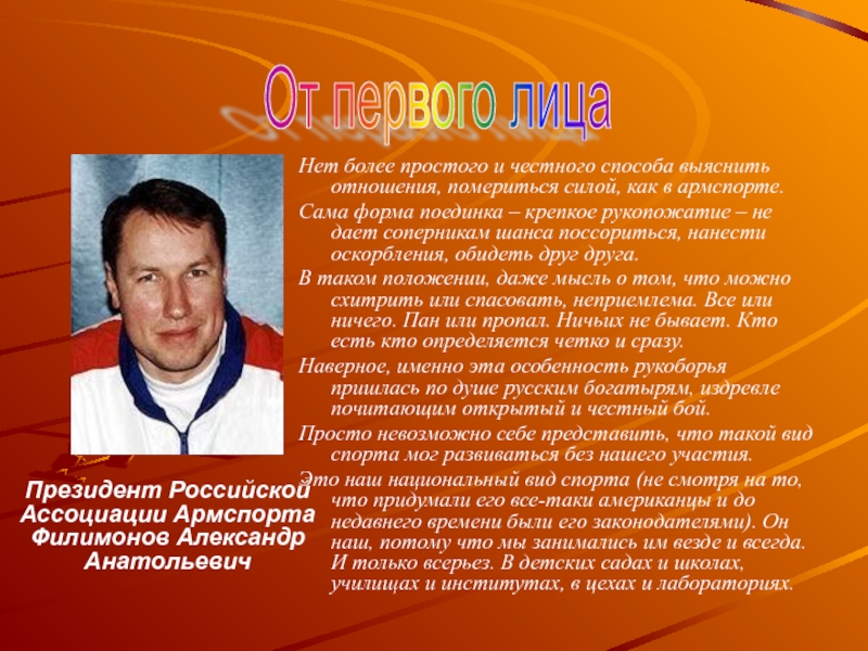 Президент Российской Ассоциации Армспорта Филимонов Александр Анатольевич