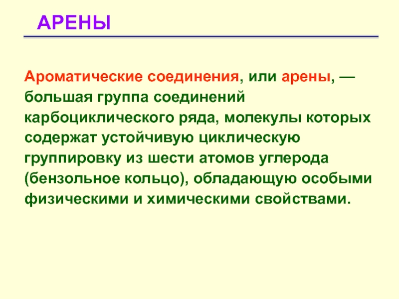 Ароматические соединения, или арены, — большая группа соединений карбоциклического ряда,
