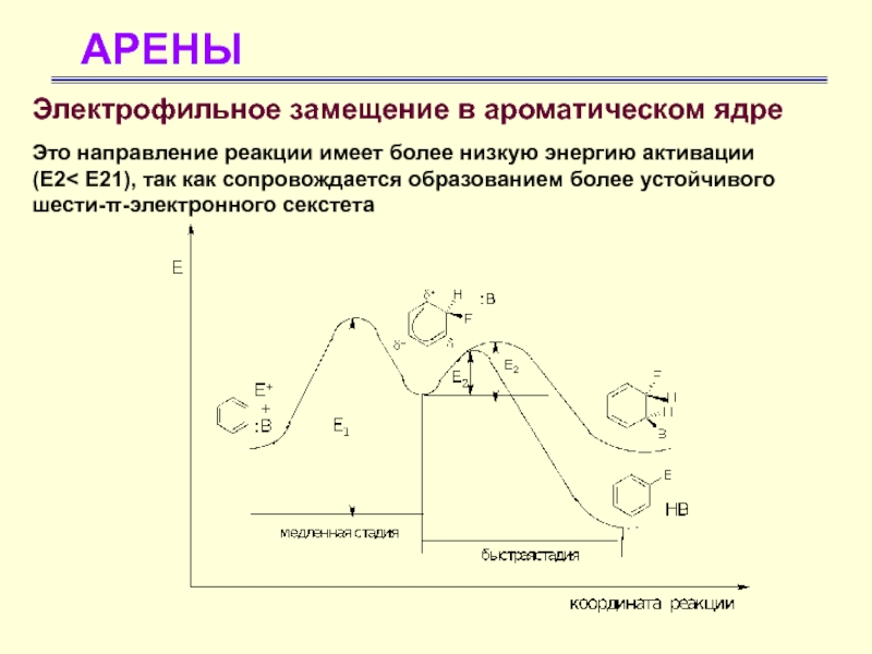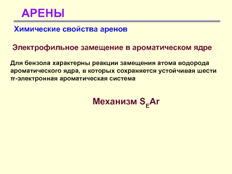 со значительной величиной энергии активации. Вместе с тем бензол достаточно легко вступает в реакции замещения. Образующиеся при этом продукты сохраняют специфическую структуру бензола