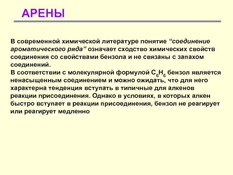 В современной химической литературе понятие “соединение ароматического ряда” означает сходство
