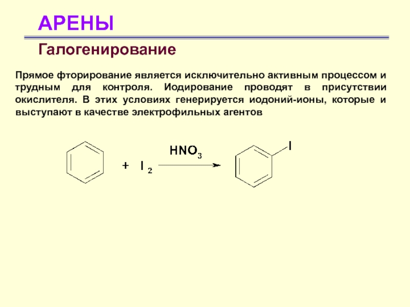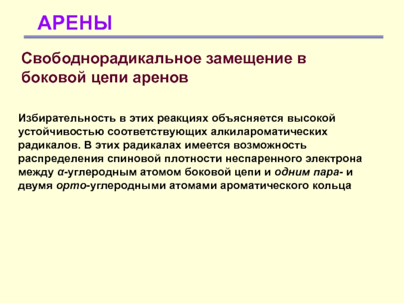 свободнорадикального замещения аренов: галогенирование, нитрование происходят в боковой цепи (алкильной группе)