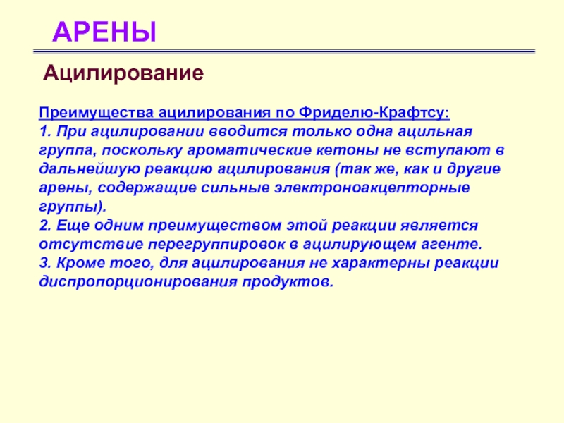 Преимущества ацилирования по Фриделю-Крафтсу: