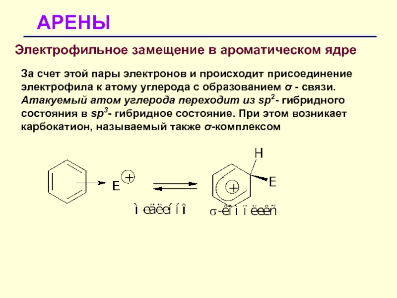 и происходит присоединение электрофила к атому углерода с образованием σ