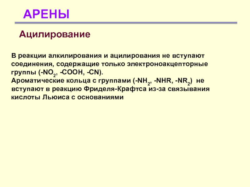 В реакции алкилирования и ацилирования не вступают соединения, содержащие