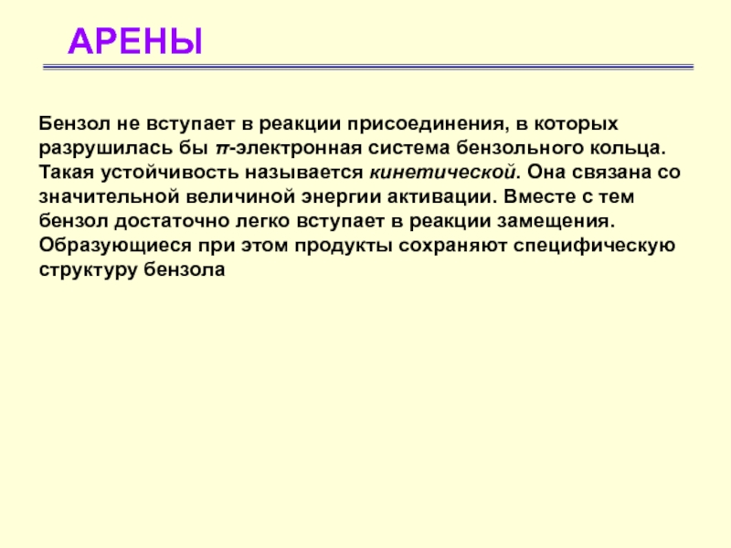 π-электронная система бензольного кольца. Такая устойчивость называется кинетической. Она связана