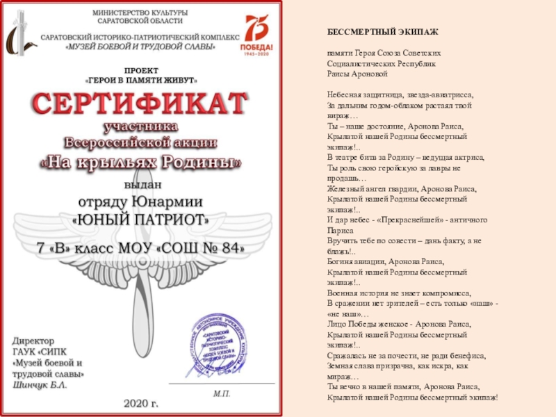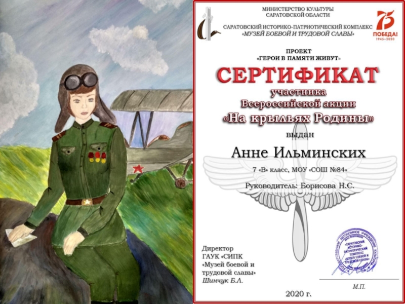 бортом ее самолета разорвался зенитный снаряд. В результате она получила