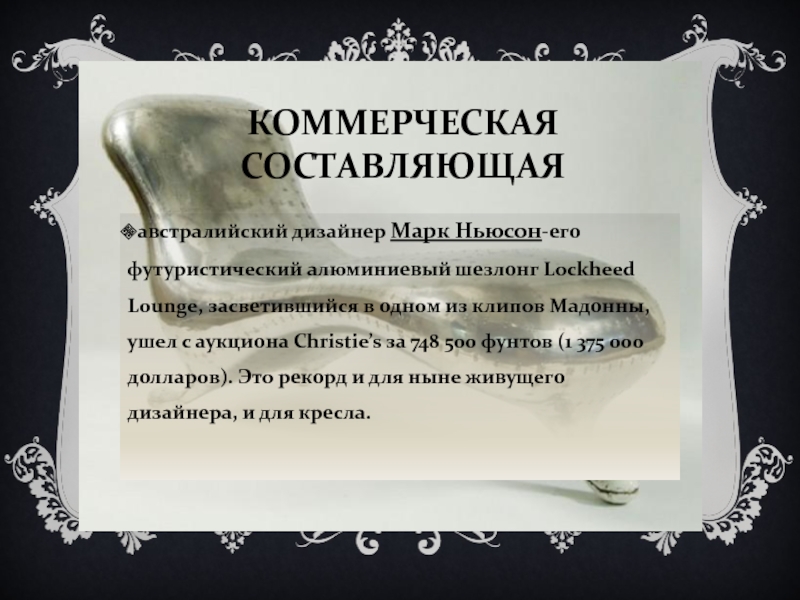 за 748 500 фунтов (1 375 000 долларов). Это рекорд и для ныне живущего дизайнера, и для кресла.