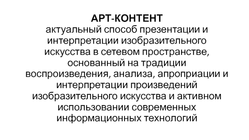 Слайд 5Немодифицированный арт-контент представляет собой совокупность веб-контента, в котором произведения изобразительного