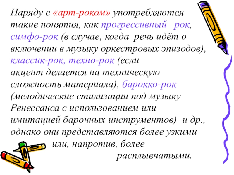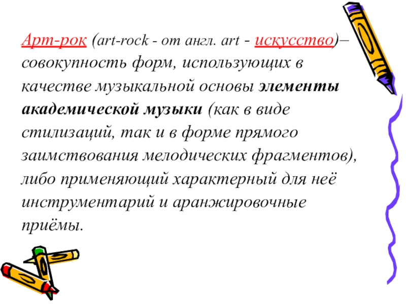 Слайд 2Арт-рок (art-rock - от англ. art - искусство)–