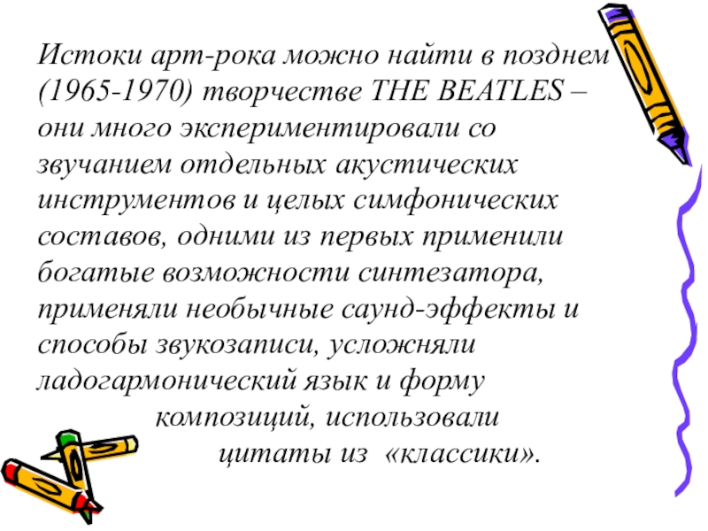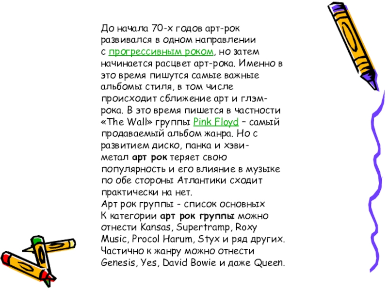 роком, но затем начинается расцвет арт-рока. Именно в это время