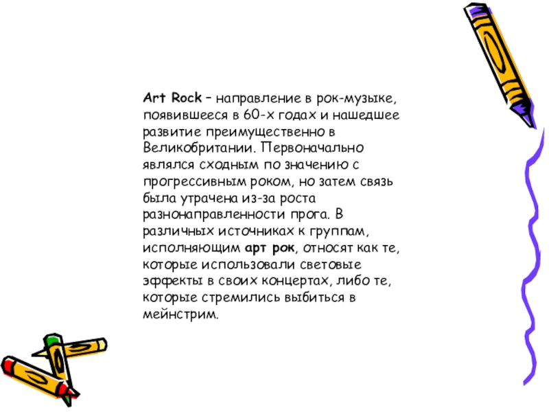 Слайд 3Art Rock – направление в рок-музыке, появившееся в 60-х годах и