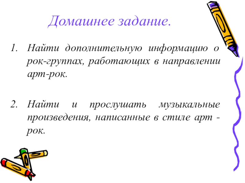 Найти и прослушать музыкальные произведения, написанные в стиле арт -рок.