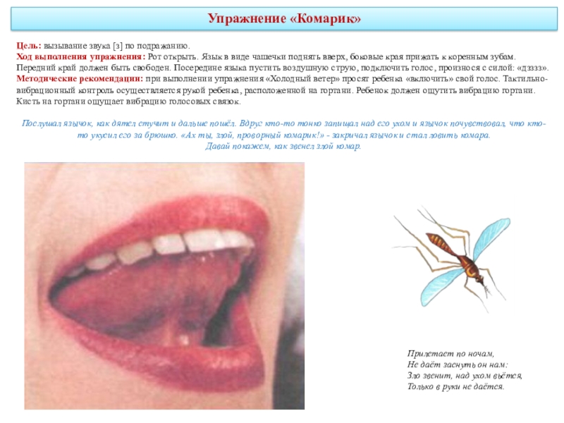 Губы сомкнуты. Напряженный кончик языка движется между губами и зубами,