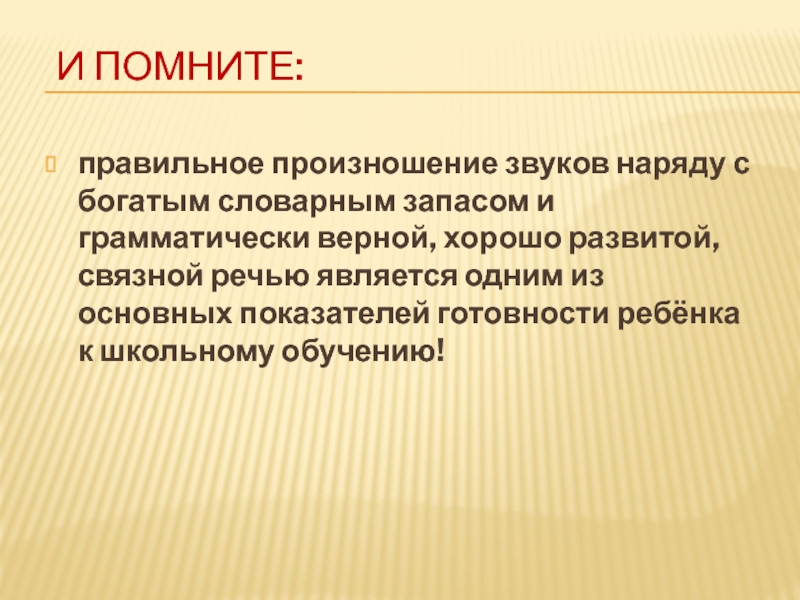 И помните:правильное произношение звуков наряду с богатым словарным запасом и грамматически верной, хорошо развитой, связной речью