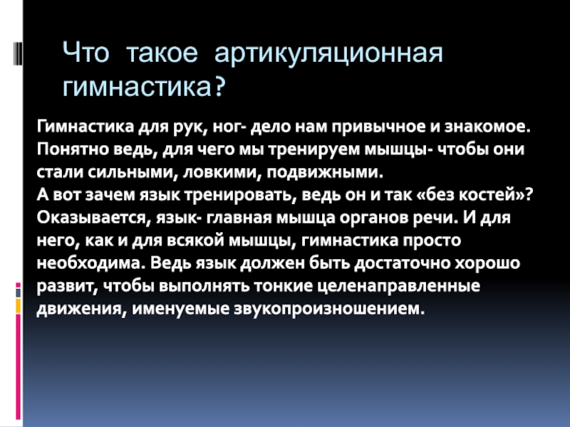 стали сильными, ловкими, подвижными.А вот зачем язык тренировать, ведь он и так «без костей»?