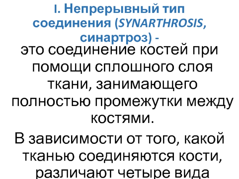 Слайд 3I. Непрерывный тип соединения (SYNARTHROSIS, синартроз) -