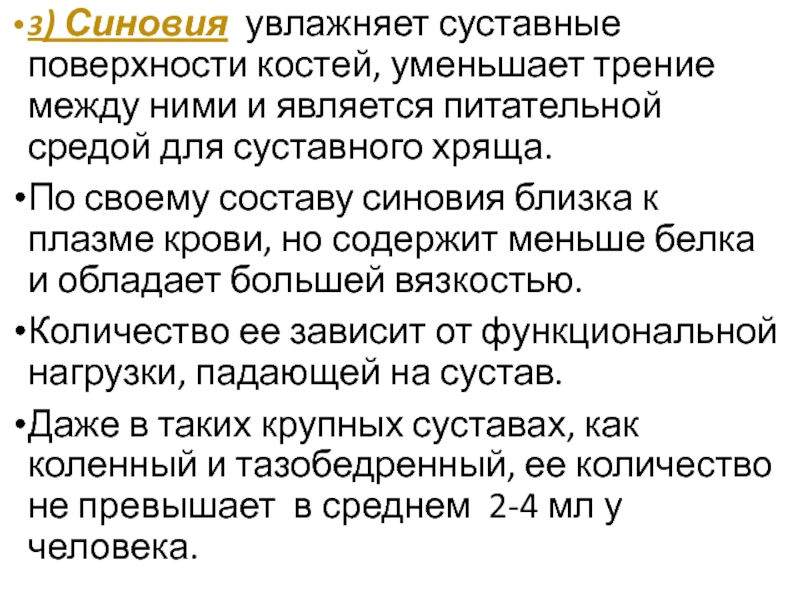 Слайд 303) Синовия увлажняет суставные поверхности костей, уменьшает трение между ними