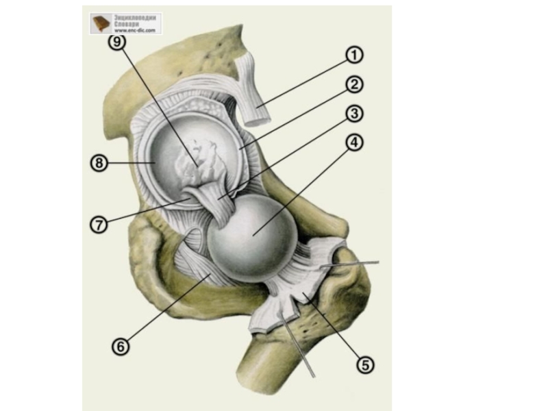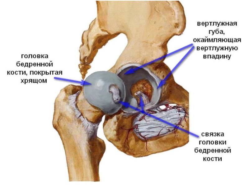 сустава, где внутри сустава имеется круглая связка, ограничивающая размах движения.