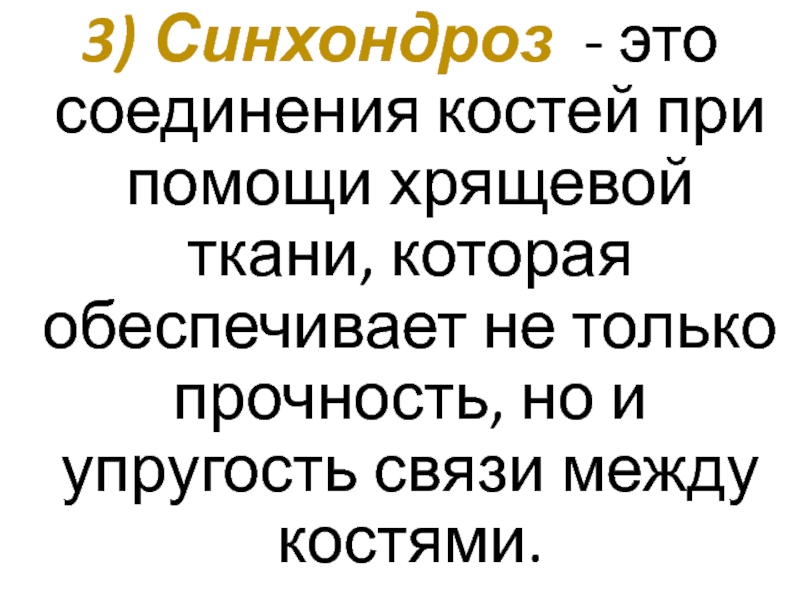 Слайд 133) Синхондроз - это соединения костей при помощи хрящевой ткани,